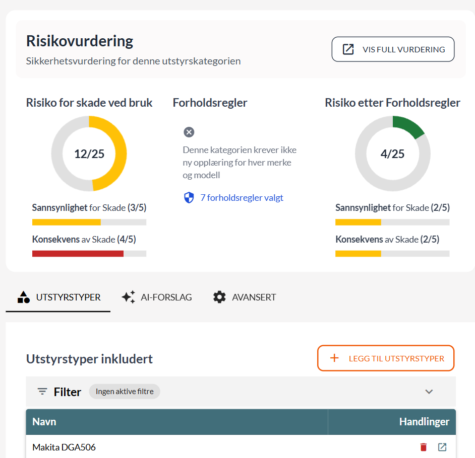 Risikovurdering bruk av utstyr